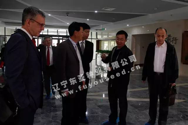 2017年5月6号,比利时农业代表团到辽宁东亚种业有限公司参观并进行农业技术交流。比利时农业代表团参会人员有:比利时瓦隆大区政府及比利时法语区政府农业,旅游及体育基础设施部部长勒内·科林、比利时驻华大使马怀宇、部长办公室主任左卡斯特洛、瓦隆大区旅游局副总经理科尼格拉特、比利时驻华大使馆商务处经济商务参赞丁爱宇、比利时驻华大使馆瓦隆商务处官员董欣欣、翻译林琳、记者劳森·菲利普等。