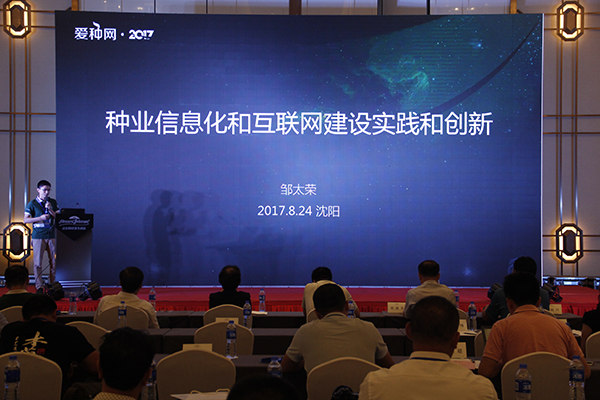 针对新老合作伙伴,爱种网业务总监张荣彬和技术总监邹太荣分别就爱种网营销服务整合与创新、种业信息化和互联网建设实践创新两个主题向与会来宾作了介绍。